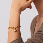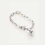 A joyful, inflated heart charm is suspended from a paperclip bracelet. The chain bracelet's adjustable length offers a custom fit. Finished in high-polish 14k gold.