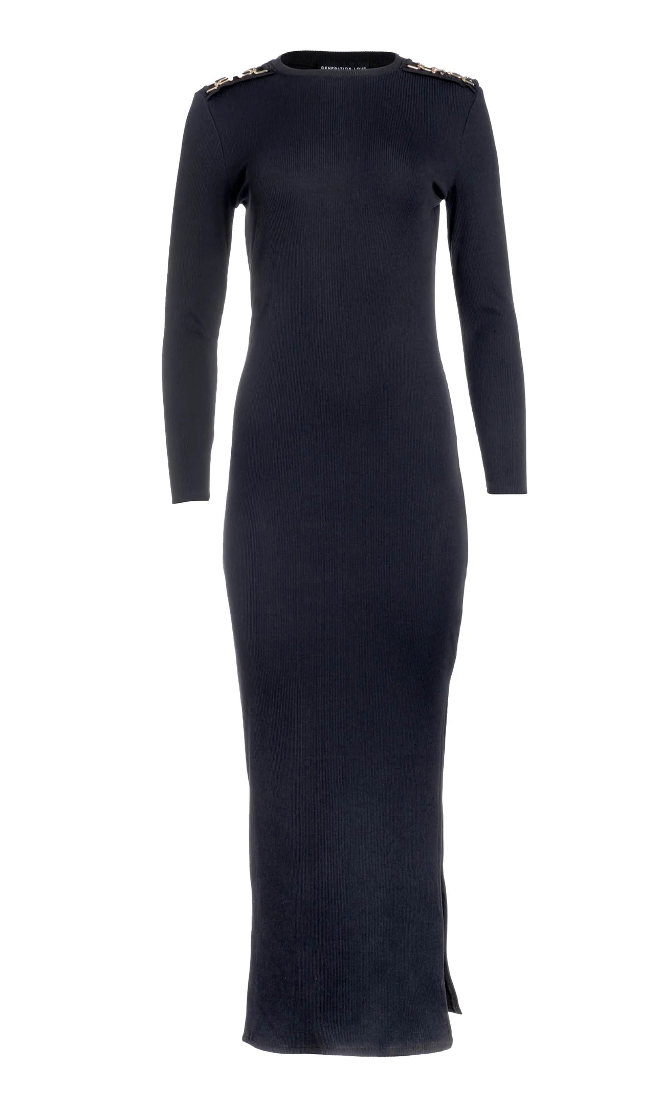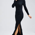 <head><meta charset="UTF-8" /></head>Chic and elegant, this fitted black dress with a sophisticated side slit is a timeless choice, perfect for any occasion.