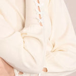 -Wide tightened cuffs, fancy satin bows on the sides