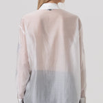 Shirt regular fit made in tencel organza. Classic cut neck, butterflies with strasses, central buttons for opening and long sleeves.