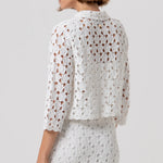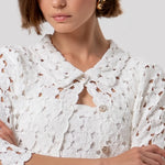 Cardigan regular fit made in lace. Collar, central buttons for opening and 3/4 sleeves.
