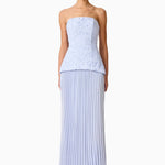 Make a statement at any formal occasion with the Lacy Strapless Gown in Powder Blue, a stunning gown that combines delicate detailing with timeless elegance. Crafted from luxurious broderie lace fabrication, the fitted bodice highlights the waist while offering a sophisticated silhouette. The strapless neckline beautifully frames the shoulders and décolletage, perfect for showcasing statement jewellery or an effortless, bare-shoulder look.