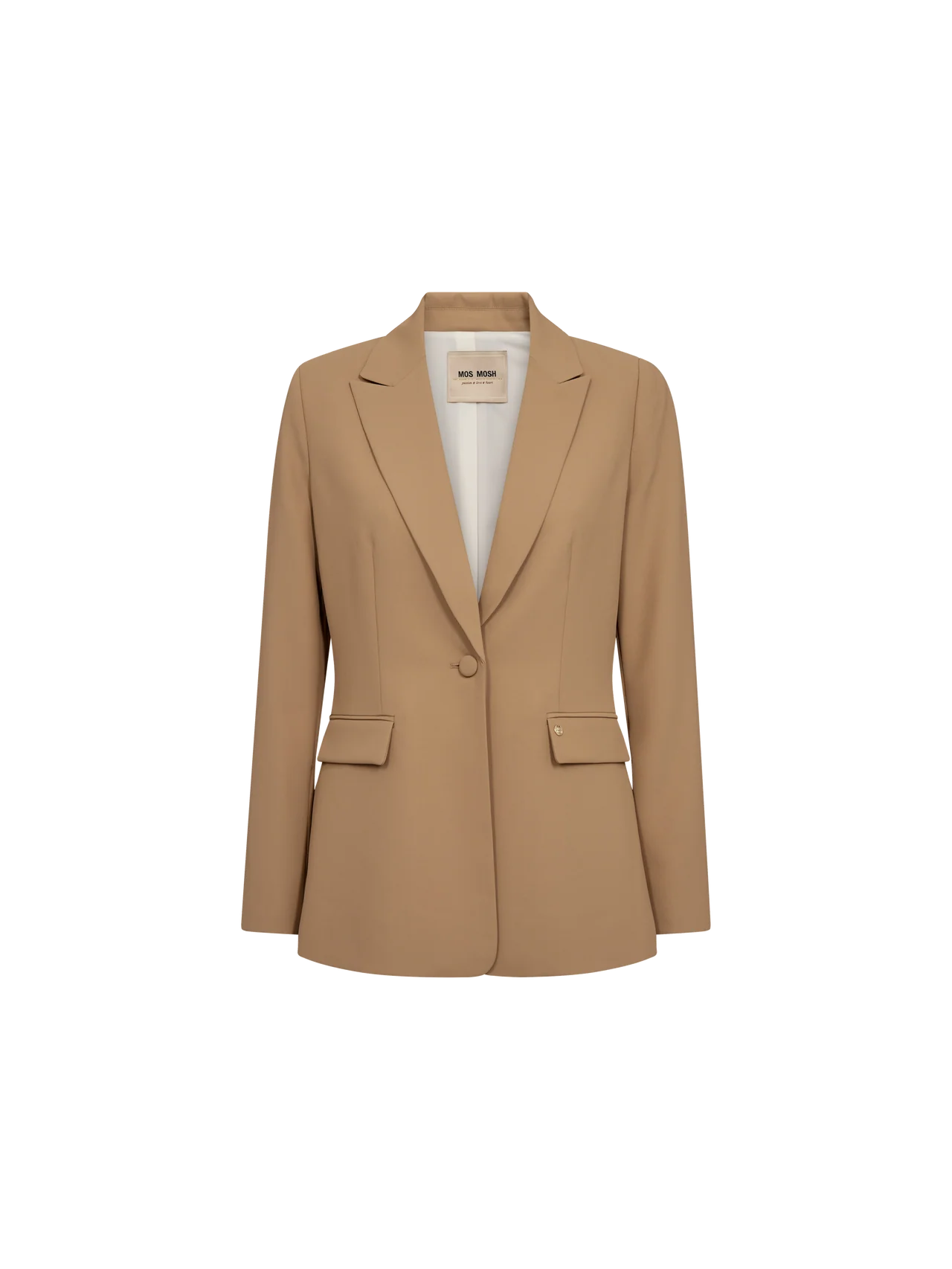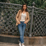 A timeless tailored blazer with a sleek, fitted silhouette. Designed with a single-button closure, classic lapels, and front pockets for a refined touch. The clean lines and elegant structure make it perfect for both office wear and evening occasions.