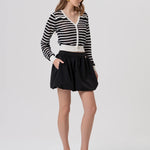Cardigan cropped with stripes. V-neckline, central buttons for opening and long sleeves.